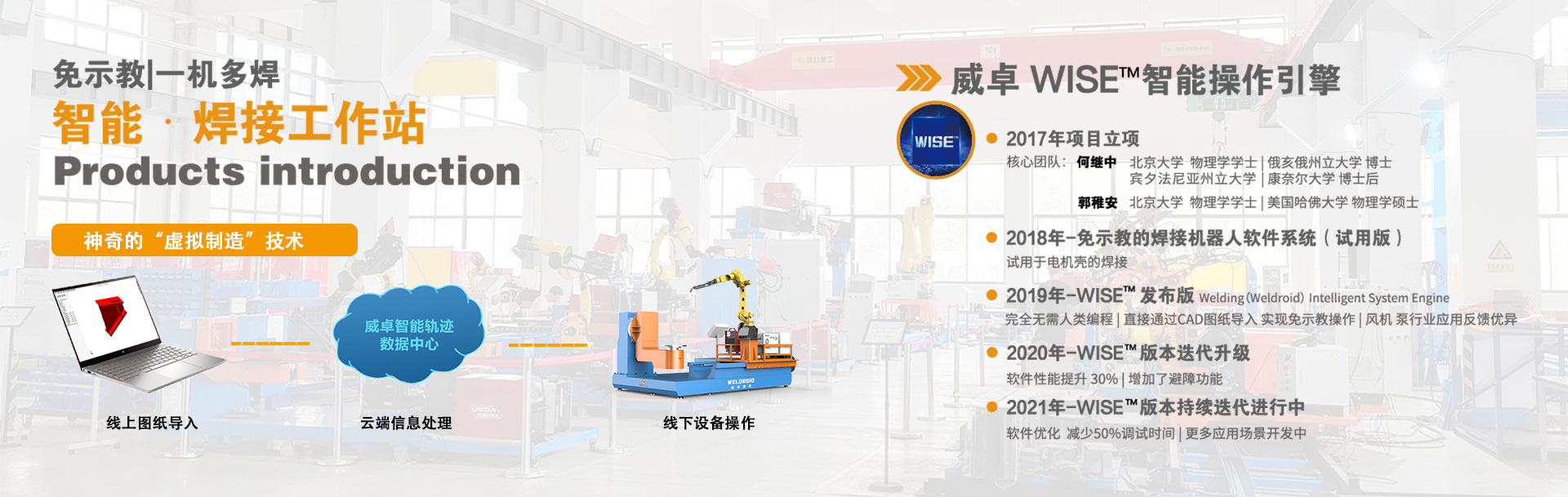 無(wú)錫威卓智能機(jī)器人有限公司成立于2017年,是無(wú)錫市政府引進(jìn)的科技領(lǐng)軍型高新技術(shù)企業(yè),公司研發(fā)團(tuán)隊(duì)80余人,我們堅(jiān)持自主創(chuàng)新,利用自主開發(fā)的虛擬制造技術(shù)對(duì)傳統(tǒng)焊接行業(yè)進(jìn)行升級(jí)改造。 公司主推的工業(yè)風(fēng)機(jī)系列-智能焊接工作站產(chǎn)品,具有免示教、實(shí)時(shí)跟蹤、簡(jiǎn)易工裝、傻瓜式操作等優(yōu)點(diǎn),真正幫助企業(yè)解決了招焊工難,用工成本高,焊接質(zhì)量不穩(wěn)定等問題。